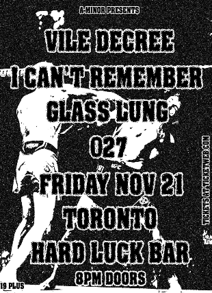 Vile Decree w/ I Can’t Remember, Glass Lung & 027