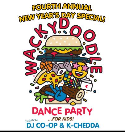 It’s the FOURTH annual WackyDoodle Kids Dance Party for New Year’s Day!
