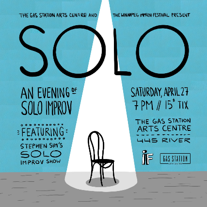 The SOLO impro show is on Saturday, April 27th at the Gas Station Arts Centre at 7 pm. The show will explore the most dangerous and lonely of all performances... the solo act. If we were going to say one single thing about this show it would be that it's hilarious! The first half will feature a mix of solo acts including members of Club Soda Improv. The second half will feature Stephen Sim presenting his Solo Improv show (which he premiered at the Winnipeg Fringe Festival last summer). Tickets are $15 (available online and at the door). Come on down and have a great time with great people.