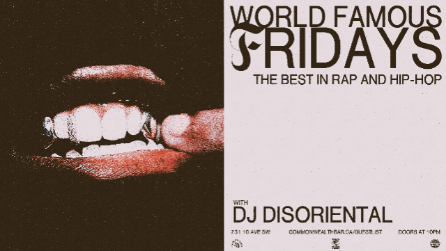 World Famous Fridays at Commonwealth Plays only the Best in Hip-Hop & Rap EVERY FRIDAY With DJ Disoriental from 10PM until 2AM.