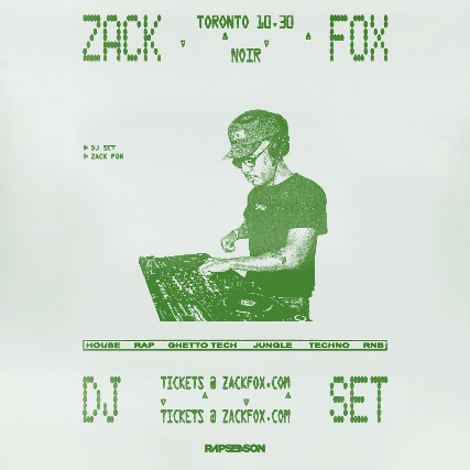 Rapseason Presents: ZACK FOX DJ SET Wednesday October 30 2024 NOIR 19+ Door/Show: 8PM   This is a LEGAL AGE 19+ event.  Valid photo ID required. Event tickets are general admission.  All price tiers allow the same access.  All sales are final.  No refunds or exchanges.     The Noir venue box office is open only on event days after doors open.  No advance will call.   Net Capacity: 600   For more venue information please visit  https://rebeltoronto.com/info